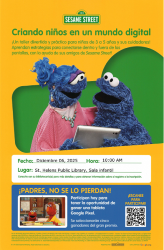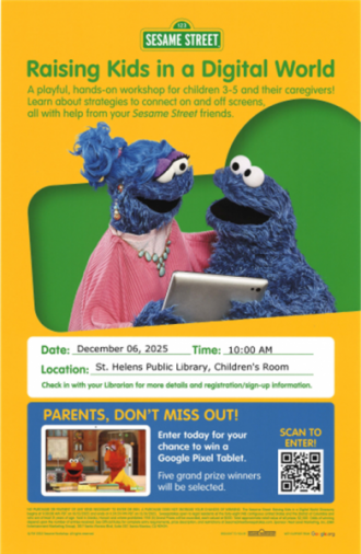 Special Family Storytime: Sesame Street Raising Kids in a Digital World - a Sesame Street workshop all about building healthy digital habits through fun family activities. Includes a book and a project to take home.